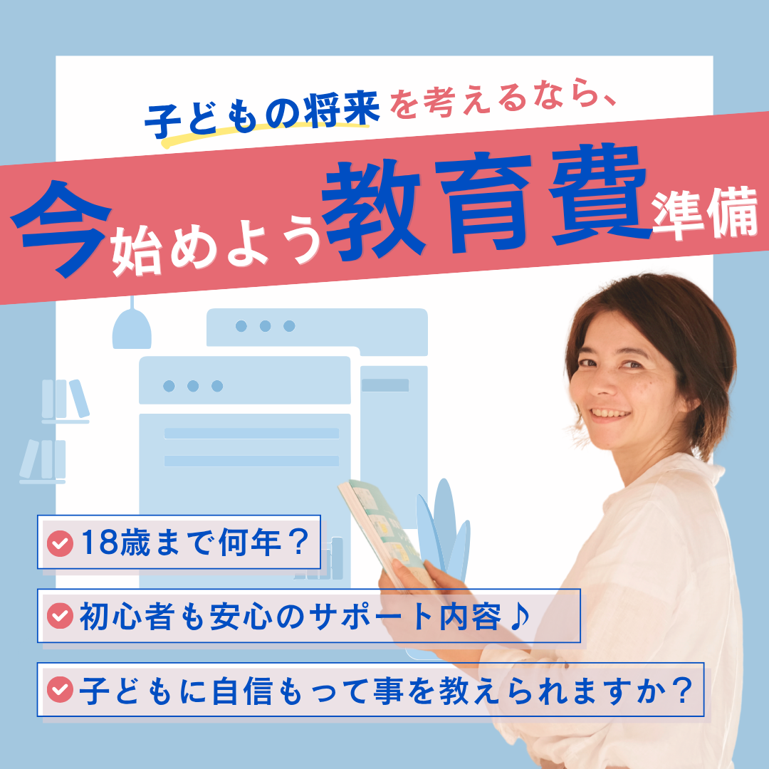 そういった【家計管理】や【教育費】の話が初心者の方にも安心してお金を貯めるスキルを個別レッスンにてお伝えしています♪ 以前は子どもの教育費に悩んだママとして、いまでは証券外務員の資格も活かしつつ教育費〜家計管理〜投資まで幅広くお伝えしています。 子育て中のママに特化した家計スクールを運営しています。